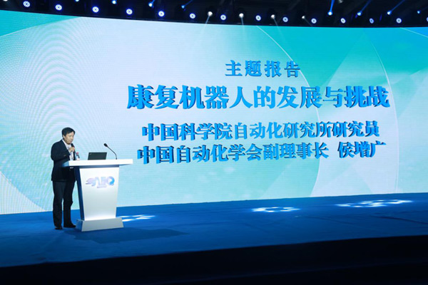 今日上午最后一個(gè)報(bào)告來自于中國科學(xué)院自動(dòng)化研究所研究員、中國自動(dòng)化學(xué)會(huì)副理事長侯增廣,他的報(bào)告題目是“康復(fù)機(jī)器人的發(fā)展與挑戰(zhàn)”,在對(duì)當(dāng)今社會(huì)健康問題論述后,侯增廣研究員主要介紹了康復(fù)機(jī)器人的運(yùn)行原理以及其面臨的問題。和傳統(tǒng)醫(yī)療相比,康復(fù)機(jī)器人無疑具有更多的可能性,也為人類解決健康問題提供了新的方案。在具體的論述環(huán)節(jié),侯增廣研究員對(duì)如何實(shí)現(xiàn)康復(fù)閉環(huán),如何為患者打造可穿戴的康復(fù)機(jī)器人等問題進(jìn)行了重點(diǎn)分析,并從人機(jī)交互控制、動(dòng)力學(xué)信號(hào)(位置、角度、速度)以及人體生物信號(hào)等多個(gè)角度和與會(huì)來賓進(jìn)行了探討,并對(duì)過往案例進(jìn)行了詳盡的分析。